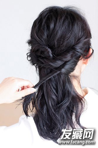 3,用左右耳朵上方的头发重复第1和第2步的流程。发束互相交错呈现出立体感 4,从拧起的部分中少许抓出一些发丝。富有立体感的造型完成优雅的氛围。