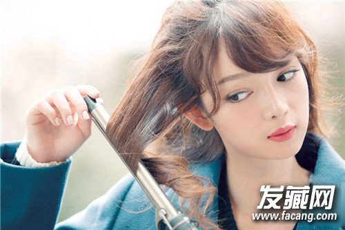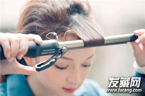 用小直径的卷发棒卷烫刘海的尾端,包括旁边的细碎散发也要一起卷烫。