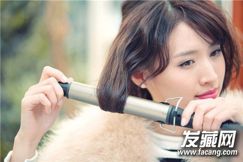 用中等直径卷发棒将整头头发卷烫出弧度,刘海和侧边的发丝要增加卷烫时间定型。