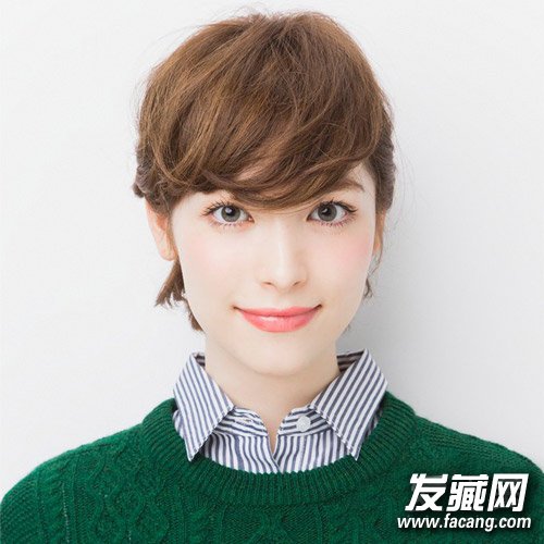 斜刘海特别的弧度突出妹子的闪闪大眼,而扭转鬓角让整个脸型变得更加的立体,让妹子变得更加的可爱帅气。