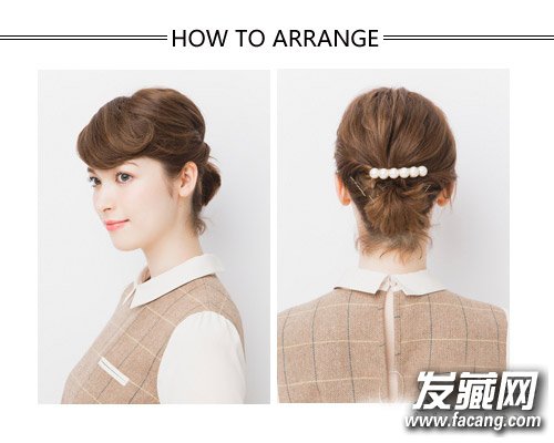 step 4:然后将下面剩余的头发用小发卡向上固定,然后佩戴上准备好的发饰就完成。