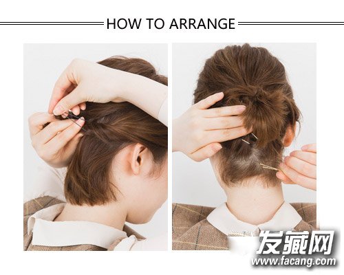 通过扎发与扭转发束让短发看起来更加的干练利落,同时搭配上可爱的发夹就能温婉吸睛。
