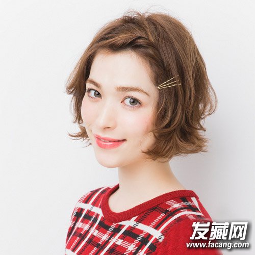 蓬松外翘的短发搭配扭转发束简约大气,金色发卡提升吸睛指数。让妹子的短发显得比较别致。