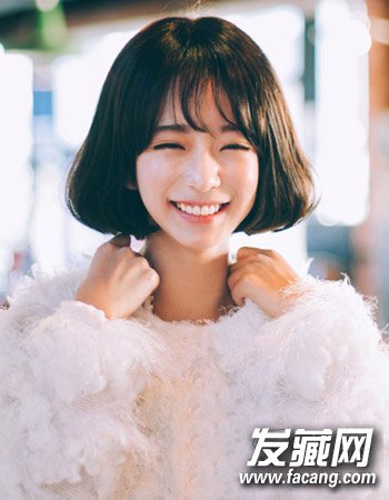 甜美的内蓬短发发型, 时尚的韩式空气刘海勾勒出别致的时尚感来,发尾的内扣显露出十足的甜美。