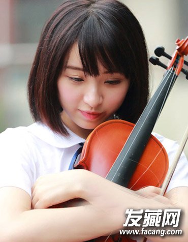 柔顺的发丝服贴于脸颊两侧,勾勒出一种含蓄的内敛与温柔,抱着乐器的女生清新动人, 发色的渲染平添些许时尚气息。
