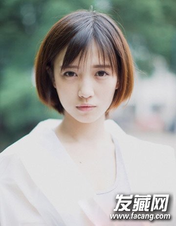 发尾整齐的短直发发型,带一点层次的短发很是清爽自然,空气感十足的刘海搭配栗棕色的染发清新自然,将皮肤衬的更加白皙。