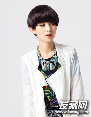这是一款类似于蘑菇头的女生短发造型,短发梳理的柔顺直滑,微微遮掩的刘海衬托出精致的妆容,很吸眼球哦!