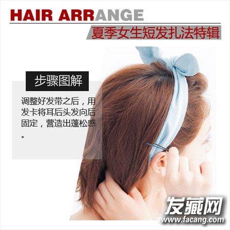 step 2:调整好发带之后,用发卡将耳后头发向后固定,营造出蓬松感。
