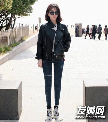 韩系短发x黑超x皮衣,酷酷的女生也能尝试。
