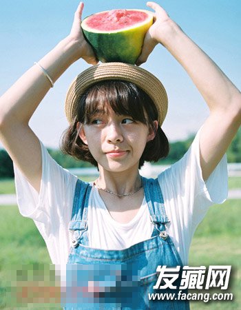 小清新式的可爱短发当然是校园妹子的专属。可爱的内蓬短发巧妙地利用帽子拗出造型显露出个性活泼的一面,而且造型颇有个性与时尚感,简单清纯。