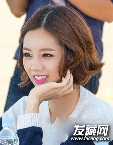 精致的小脸加上气质的中分中短发的设计勾勒出别致的时尚感来,而且发尾的小卷烫发显露出个性与时尚的一种,清新灵动不言而喻。