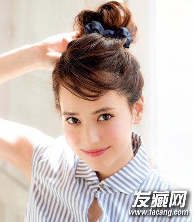 发型点评:炎热夏日里一款减龄清爽花苞头是每个少女的最爱,高耸的扎发清爽减龄,宝蓝色发带更增添优雅感。