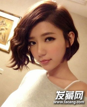 侧分蛋卷头发型,这样不对称的短发发型很受现在女生喜欢,大偏分的长刘海弄成蛋卷烫,时尚好打理。