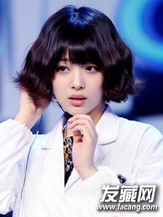 这款俏皮的齐刘海短发也是很适合妹纸们夏季打理的清爽发型,短发烫发造型配合打薄的齐眉平刘海修颜,非常适合个子矮的女生打理。