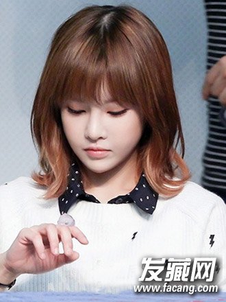 这款中短发发型也是齐肩发MM们不错的选择,清新的韩式齐肩短发发尾烫出蓬松的外翻卷度,配合清透的刘海修颜显嫩。