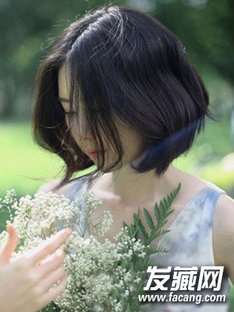 很有小清新范儿的一款齐肩中短发发型,微微烫卷的蓬松发丝清新飘逸,中分刘海修饰脸型,知性范儿尽显。
