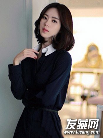 很有知性气质的一款韩式中短卷发发型,乌黑的短发烫出蓬松的外翻发卷增添发量感,很适合头发少的女生打理。