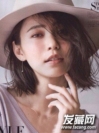 很有清新气质的一款甜美斜刘海短发发型,侧分斜刘海设计修饰额头甜美瘦脸,很适合MM们日常打理的国字脸发型设计。