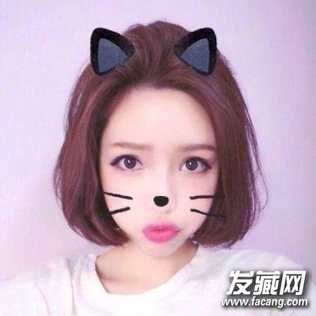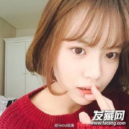 甜美俏皮的波波头短流行发型中不可缺少的一款,空气刘海加上内扣发型设计简单干练,露出下巴更显瘦。