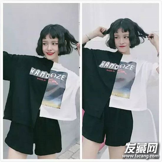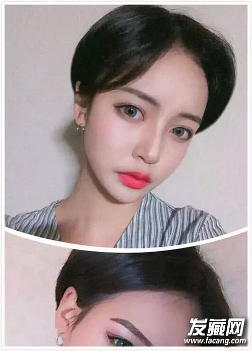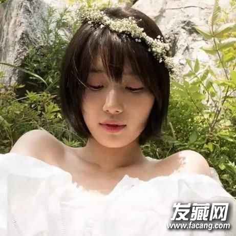 这款短发给人一种清纯和小清新的感觉,学生妹发型。头发的长度刚好盖到耳朵的位置,中分的刘海也刚好到脸的中部,不仅可以遮住太阳穴不够饱满这个小缺陷还可以遮住些许脸上肉肉多这个问题哦~装嫩必备发型,又有点小性感的感觉,也可以随意搭配,集性感与小清新为一体的发型,怎能不爱呢!