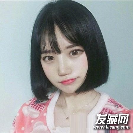 长度齐脖短发在2017年也非常流行,可爱发型,自然黑发让人看起来清纯气质十足,与可爱齐刘海搭配,真心甜美可爱,而且很有邻家妹妹范儿!