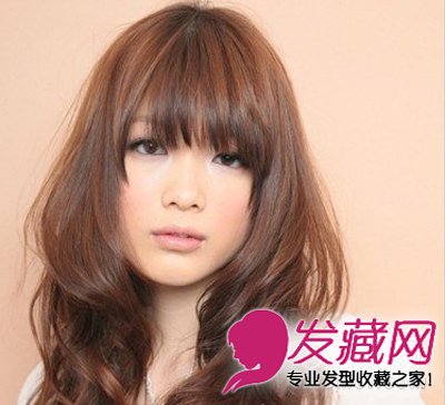 方脸适合什么发型?小编一眼看到这款长发烫发发型,就觉得很适合方脸的MM。碎剪的刘海轻盈甜美,而简单的烫发稍稍遮掩了脸型的缺陷,让人随着卷曲的发丝感受一种浪漫的情怀。