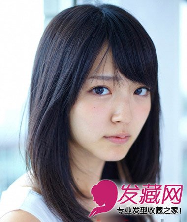 阳光系齐刘海中长发,这款长发也是很清新的哦,棕栗色染发的中长发更是充满着优雅时尚的气息,齐刘海的发型设计,呈现出一张精致的小脸造型。