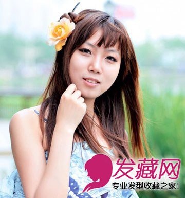 短俏的齐刘海发型遮住了大额头,纯顺的长直发发型,清新飘逸,靓丽的花朵,打造田园风美女。