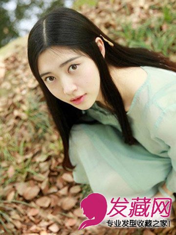 乌黑莹亮的中分长直发发型,很有小清新范儿的一款披肩直发,及腰长发打造出清新婉约的女性特质,清透脱俗的森女系发型。
