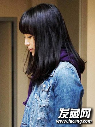 方脸MM最爱的一款瘦脸中长发,层次感设计的中长发打造出修长的鬓发,配合齐眉的平刘海,修饰出精致的巴掌小脸。