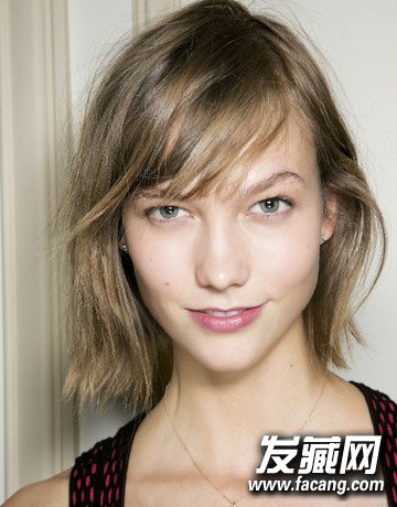 如果你想尝试波波头,那么及肩的长度搭配斜刘海,比较适合心形脸的你。重点是下巴两侧的头发要抓出纹理感,而不是柔顺的贴合面部,这样能让下颌部分有膨胀感。