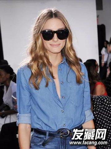 Olivia Palermo的中分卷发很适合心形脸,头发遮住了脸颊最宽的部位,让脸型更完美。