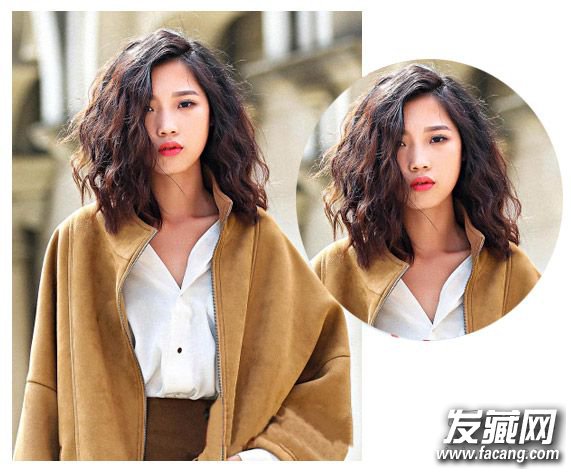 颇显帅气的一款时尚的泡面头发型,蓬松的中长发烫发与侧分发型搭配起来,不仅时尚而且优雅有气质,整个造型优雅十分。