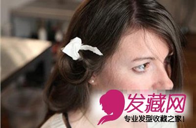 Step 3:将定型喷雾喷在纸巾上 (是的,没错,不是喷在你的发卷上!) ,它们能帮助你固定卷发 ,但是不会像定型发卷一样妨碍你或躺或卧,用喷过定型喷雾的纸巾来固定发卷还有一个好处就是,它能将定型喷雾慢慢的释放到你的发卷里去,在你睡着的时候不知不觉的帮你的发卷定型。