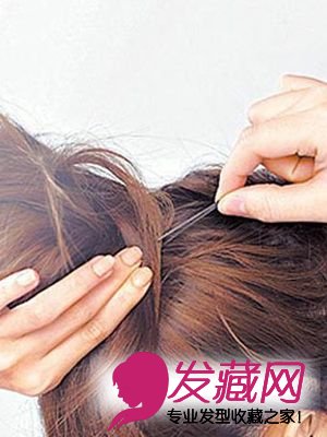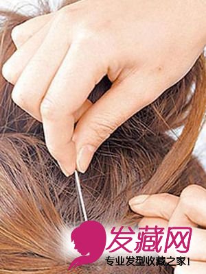 抓住马尾辫的尾端,松松地绕成小圆髻并用黑色发夹固定。