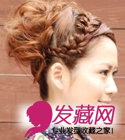 刘海 以上的发顶开始横向编辫,后面的头发向上盘起来,别忘了还有刘海,一定要打造出足够的圆润感。