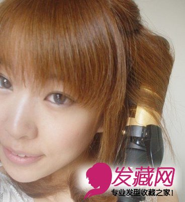 再放下一层头发,也分4份,但这次靠近脸的两份卷发 不一样哦~如果还是内卷的话整个人会看上去很老的样子,这层要把电棒竖起来向外卷。