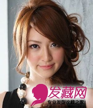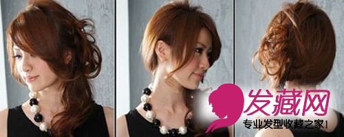 浪漫性地在一边剩下长长的头发印象,以小型的华丽衬托出大女人的风味。在整理头发前让全部头发都自然地处于蓬松状态,为头发加上滋润的柔软感。并且,为了突出基于