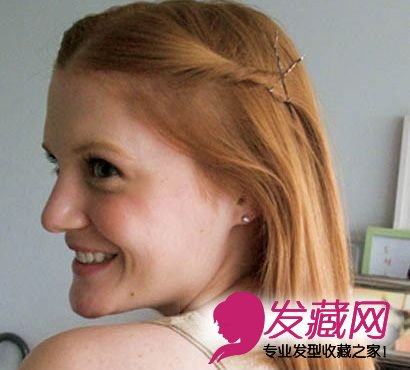 方法全部垂下头发后,用尖尾梳将头发分成中分;然后,以中线为基准,各自分出两缕头发;将分出的两缕头发,按顺序,各自朝耳根扭转;最后,分别用两枚小发卡来固定扭好两缕头发;这样,有着波希米亚风情的中分造型就完成了!总共花掉2分钟的时间。