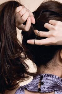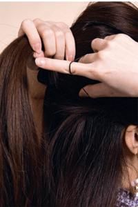 2.上半部头发扎起,位置要比一般马尾高一点。