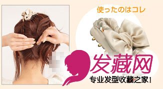 2.将头发在头顶部位拧好扎好,用发卡固定发根部。使毛发漂亮地散开。