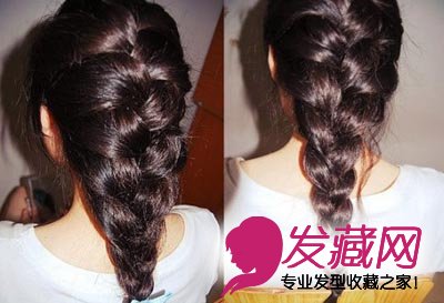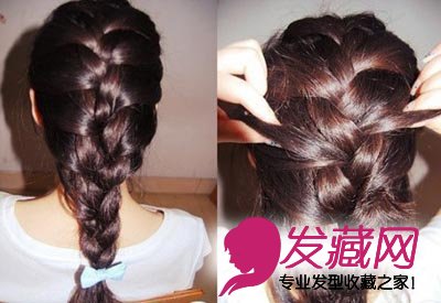 4. 也可以将辫子编完,从中间掏一个洞,将头发末端从里面塞进去,然后扯出来
