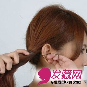 步骤一先两手沾上发蜡,把整体头发抓松软一点再开始。然后把头发扎起来,扎在右边耳朵下面的位置。