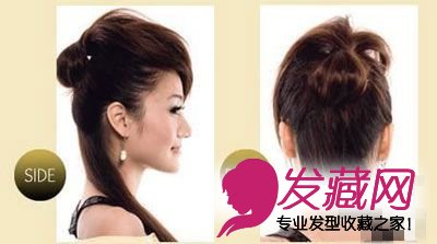 2、头顶在绑成公主头,马尾不完全拉出成一小撮,将尾巴往前留成浏海。