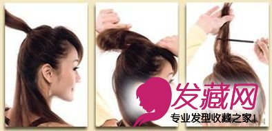 3、最后将头顶马尾发束以扁梳刮蓬。