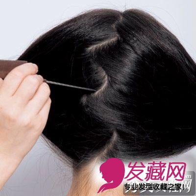 1、头发顶部以前页的造型做出清楚的中分线,后脑杓头则以不规则的方式将头发分为左右两侧。