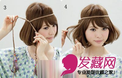 第三步用一条细细的民族风发带绑住发顶,注意绑的位置是否刚刚好哦!