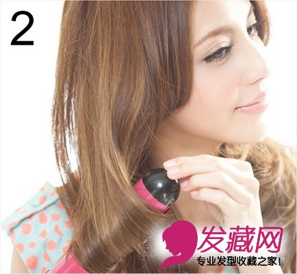 电卷棒夹住发束中段,向内卷耳下位置,松开后将卷度拨松。