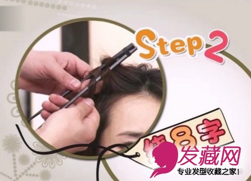 把捆绑好的筷子放到发根位置,筷子方向与发根水平面垂直。放服帖后开始把头发围绕筷子绕8字。注意,在绕8字的时候要注意方向。整体的8字走势是向外。