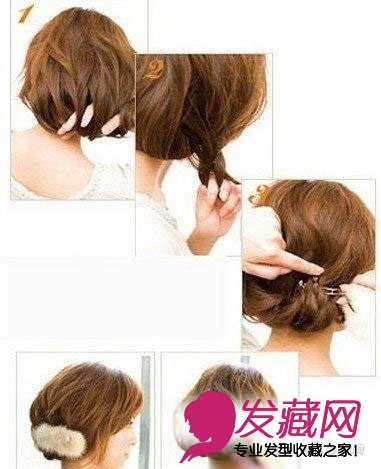 2. 用发夹把橡皮筋下面的部分往內藏,制造出盘发的效果。